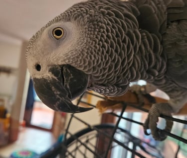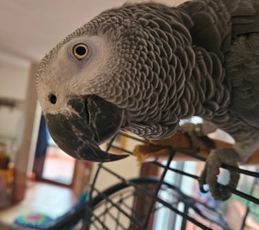 Classe 2018, nome scientifico psittacus erithacus, 30cm * 450gr di peso, mi distinguo subito per la mia intelligenza e perspicacia, nonché una certa dose di irriverenza. Nel mio repertorio conto quasi 70 fra parole e frasi e sono abile ad utilizzarle secondo il giusto contesto. Concedo il mio profilo migliore per il logo dell'azienda e di tanto in tanto partecipo a qualche uscita in spalla alla mia padrona per farmi ammirare e strappare un sorriso.